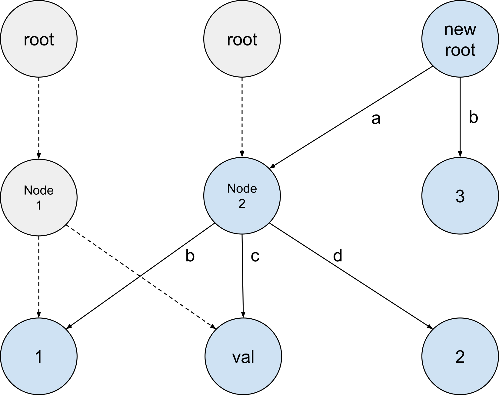 本节实验要求实现一个 Copy-On-Write Trie,实际就是 Trie 树上的所有节点创建后都不可修改,如果需要进行增删修改,则需要重新创建相应的节点。官网上已经给了这个 COW Trie 操作的例子,我们需要注意一点:修改了某个节点,它对应的所有父节点也需要重新创建,因为重新创建了某个节点,它的父节点也需要修改子节点的信息,所以对这个 COW Trie 的增删操作每次都返回了一个新的根节点。